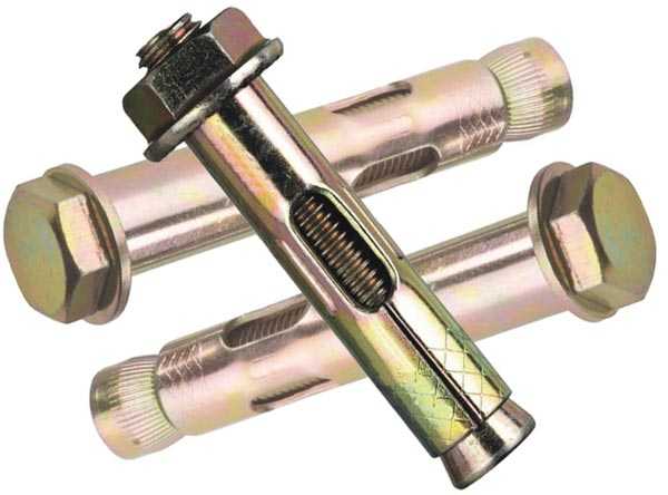 Забивные. Изделие комплектуется распорной втулкой с резьбой. Элемент забивается в отверстие и расклинивается, после этого в него вкручивается болт.