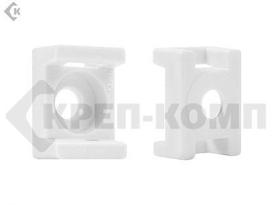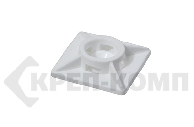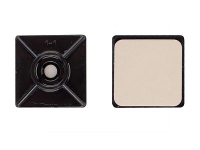 Площадки под хомут-стяжку представляют собой, квадратные площадки с двухсторонним скотчем предназначены для крепления хомутов-стяжек к гладким поверхностям внутри зданий и сооружений. Для обеспечения большей несущей способности или при использовании площадки вне зданий необходимо воспользоваться саморезом, для чего в площадке предусмотрено отверстие. Прямоугольная (усиленная) площадка может использоваться только в комплекте с саморезом и расчитана на хомуты-стяжки шириной до 8 мм.