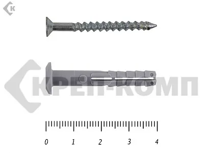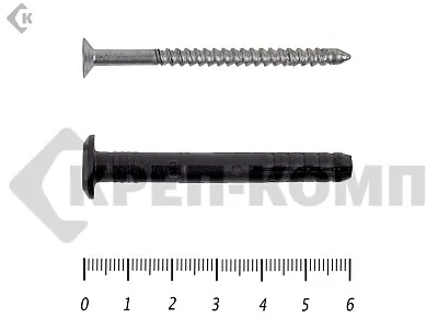 • Дюбель-гвоздь металлический. Комплектный крепеж, включающий гвоздь и распорную вставку.