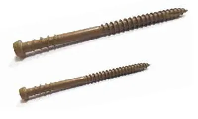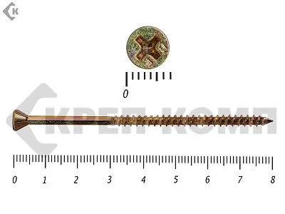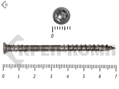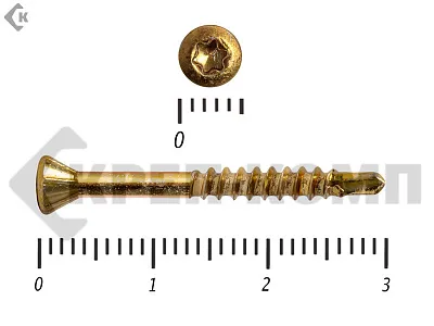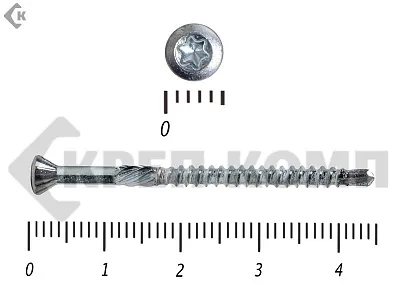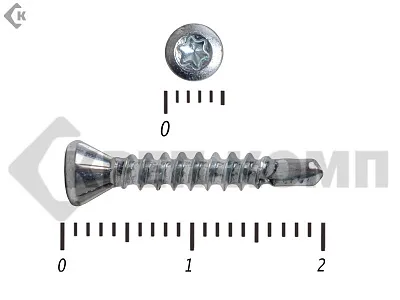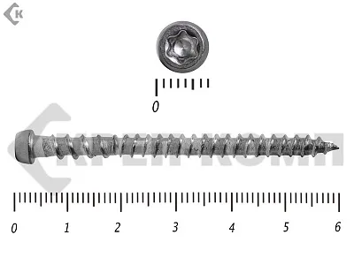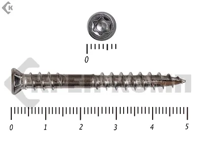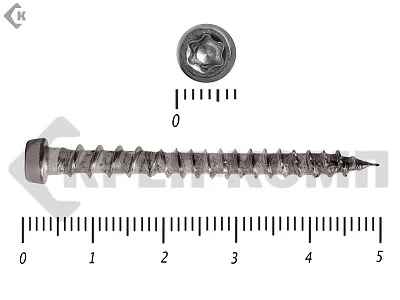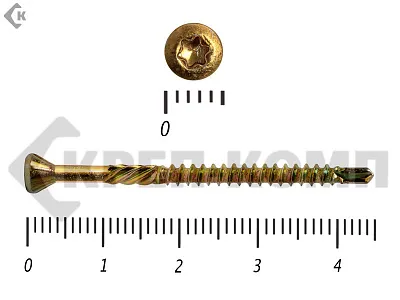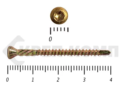 Стандартный крепеж состоит из навершия и стержня. Навершие имеет коническую форму, ориентировано на головку Torx-10. Стержень частично покрыт резьбой. На его конце присутствует сверло, упрощающее работу с твердыми породами дерева.
