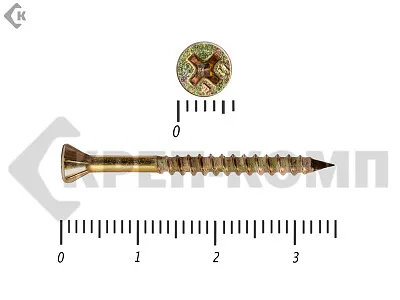 Саморезы имеют фиксированный диаметр – 3,2 мм. Длина крепежей варьируется в диапазоне 20 – 60 мм.
