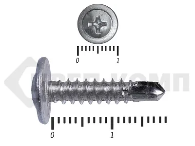 Такой вид имеет на конце острый наконечник, способный самостоятельно проколоть тонкий лист металла толщиной до 0,9 мм. Чаще их используют для крепления в профилях. Их также можно использовать и для большей толщины металла, но предварительно также придется делать отверстие сверлом по металлу. Они могут применяться для крепления и в других материалах, таких как: пластик, дерево. Часто, за это их так и называют “саморезы с прессшайбой по дереву”.
